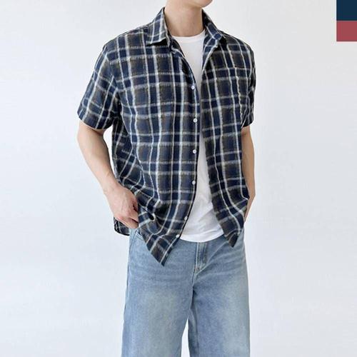 ToB ACC SS1024M 남자 린넨 오버핏 여름 체크 반팔 남방 셔츠 WFM0WPA