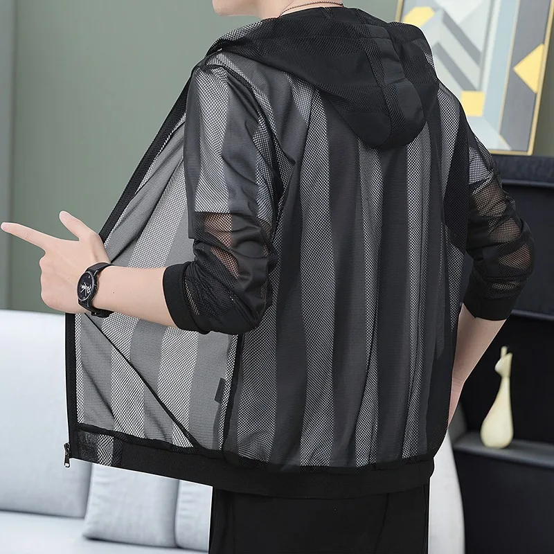 여름용 남성용 자외선 차단 의류 초박형 통기성 얼음 실크 트렌디 패션 자외선 방지 에어컨 재킷 재킷