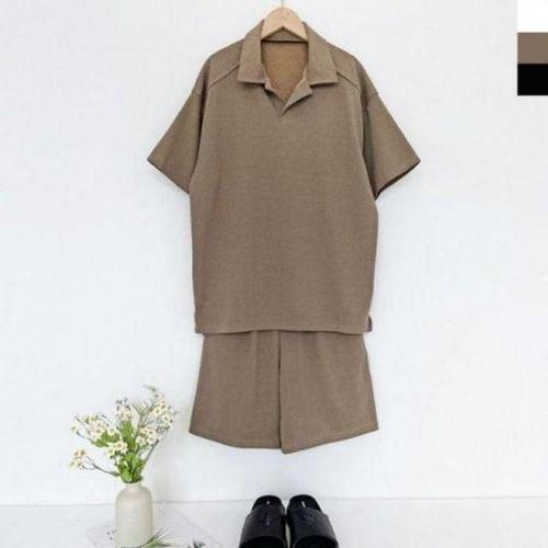 [셀러허브_여성트랜드패션]세트 여름 16남성 반팔 카라넥 반바지 데일리
