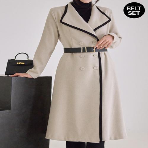 [모리스커밍홈][벨트SET]배색 라이닝 숄카라 코트_M2512CT012D