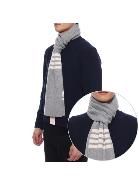 [톰 브라운] 24FW 남성 사선 스트라이프 캐시미어 머플러 (MKS026A 00011 055 24F)