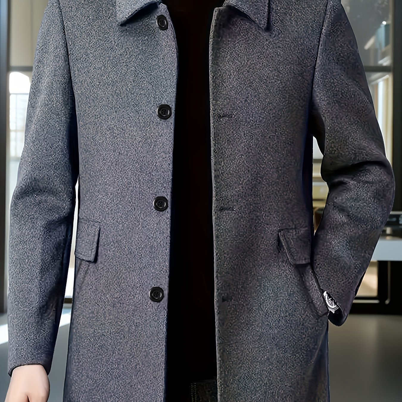 TEMU 남성 가을/겨울 트위드 코트, 롱 트렌치 코트, 왁스 처리된 따뜻한 두꺼운 남성 캐주얼 울 코트