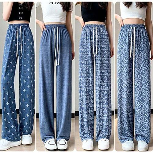 쿨 아이스 밴딩 와이드 여름 바지 깊은 색 데님 편한 WFING59