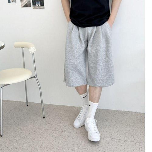 3핀턱 7부 와이드 버뮤다 트레이닝 팬츠 (2장) / 사이드 핀턱 추리닝 반바지 체육복 남자 여자 공용