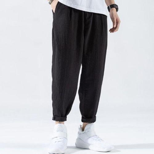 ORZQU 1+1 남성 여름 면마 와이드 팬츠 얇은 통기성 아이스 슬랙스 빅 사이즈 캐주얼 8부 조거팬츠