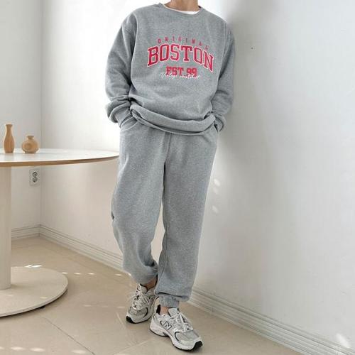 [오너클랜]인기상품 남성 영문 따뜻한 기모안감 맨투맨 조거바지 세트 [WBAC049_250916]