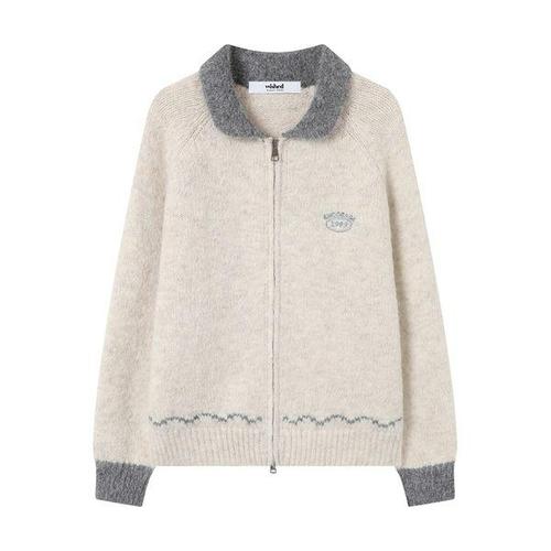 [위시드]자수 배색 카라 투웨이 집업 가디건 (WICDCD013)