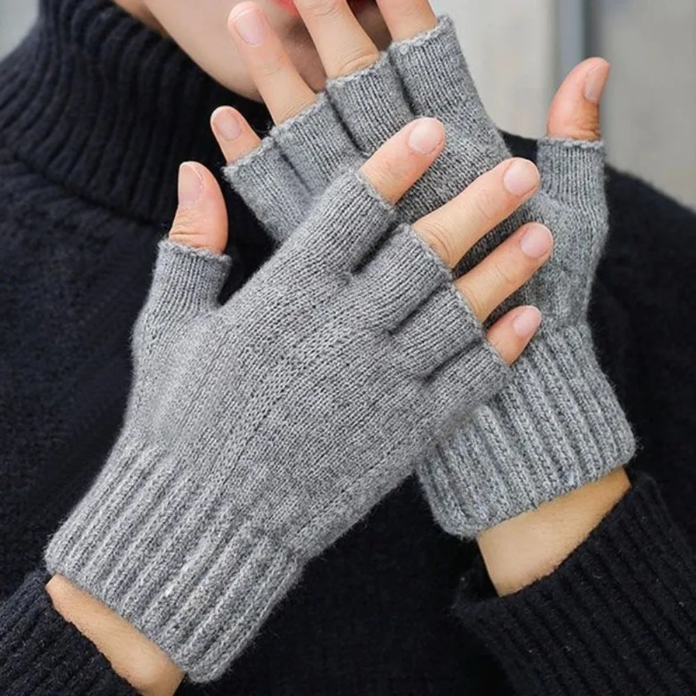 2026 겨울 및 가을 니트 장갑 따뜻한 플러시 남성 및 여성용 손가락 없는 장갑 야외 스포츠 터치스크린 장갑