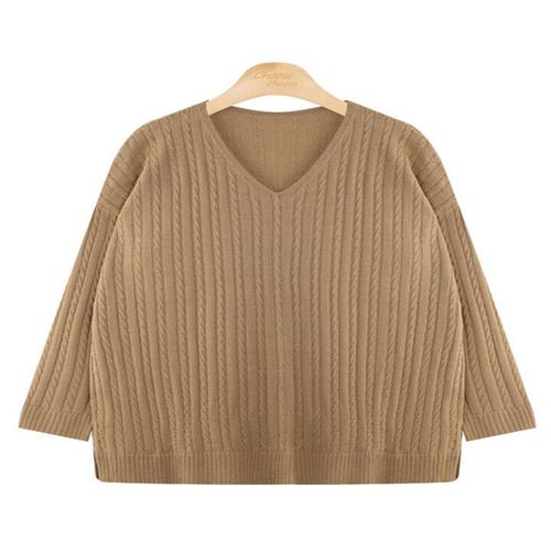 남친 니트 빈티지 헨리넥 스웨터 가을 캐주얼 브이넥 꽈배기 탑 패피3