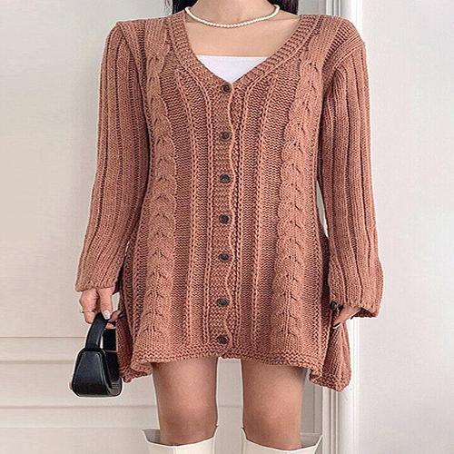 [오너클랜]인기상품 브이넥 꽈베기 니트 단추 컷팅 원피스 [WFJO1XR_260322]