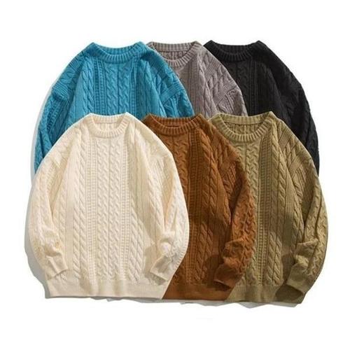 남자 꽈배기 니트 라운드넥 가을 겨울 남성 스웨터 골지 케이블 울 니트티 오버핏 빅사이즈 M~3XL
