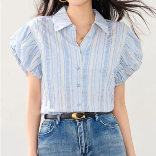 BS 마린 스트라이프 린넨 오픈카라 반팔셔츠 린넨반팔셔츠 린넨셔츠