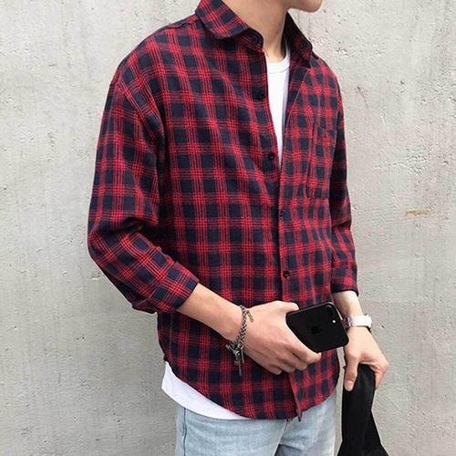 [오너클랜]인기상품 남학생 스트릿 패션 긴팔 레이어드 체크 남방 셔츠 [W9CF88E_260409]
