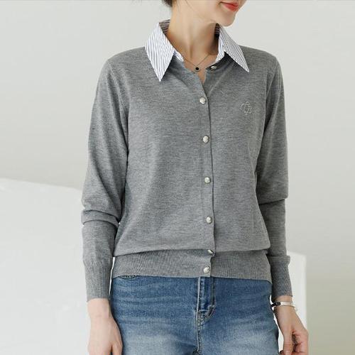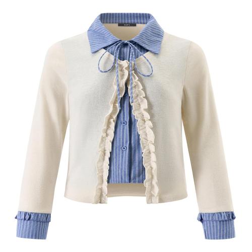 [GGPX]셔츠 레이어드 프릴 카라넥 긴팔 가디건 (GQACK007D)