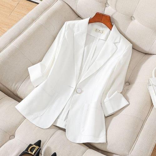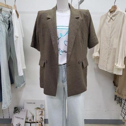 [오너클랜]인기상품 봄여름 가을 오피스룩 내추럴 베이직 린넨 자켓 [WFFT9O9_250918]
