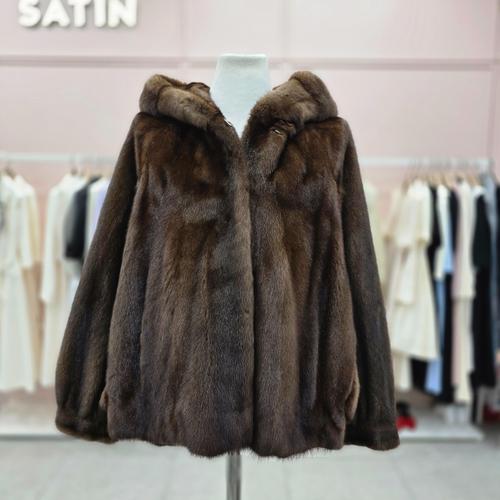 [샤틴]후드넥 천연모피 풀스킨 밍크코트S254C019A32