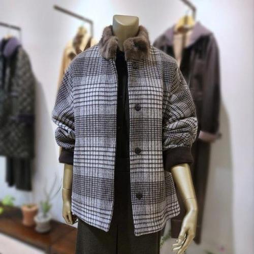 [데미안]DI81110 밍크탈착체크프린트코트