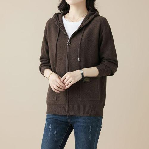 [골피아]여성 포근 후드 써클링 집업 니트 가디건 봄 가을 겨울 아우터 잠바