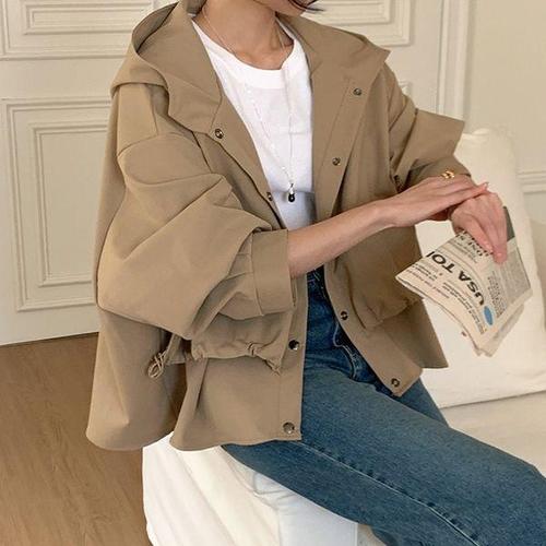 [삐까삐까]베일리 후드 점퍼 스냅버튼 스트링 오버핏 봄 간절기 야상 아우터 윈드브레이커 여행 캠핑룩