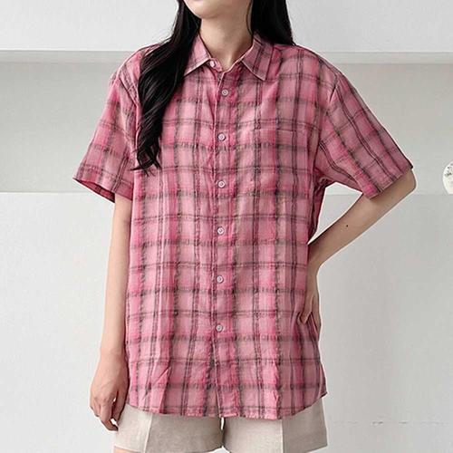 오버핏 체크 남방 여름 데일리 셔츠 커플 캐주얼 WFJFYO5