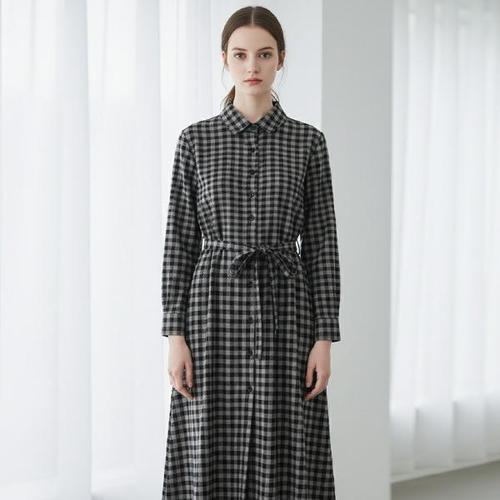 [리블리크]다이앤 체크 롱 셔츠 원피스_RF1OP004