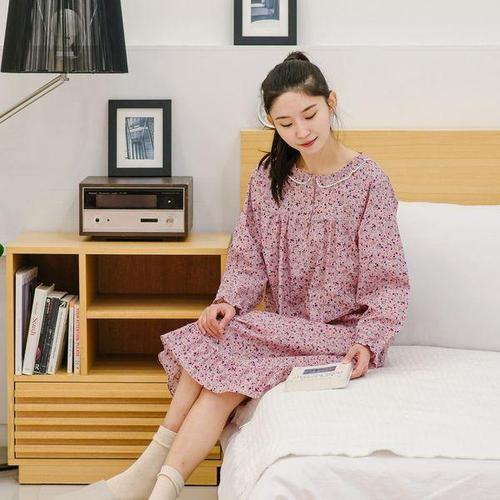 [찌니야]국내제작 여성잠옷 비쥬플라워 60수 순면 긴팔원피스잠옷