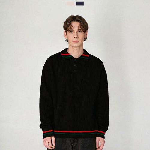 [HYIJXZBD_4B]니트맨투맨 남자 더블배색 카라니트 2Color