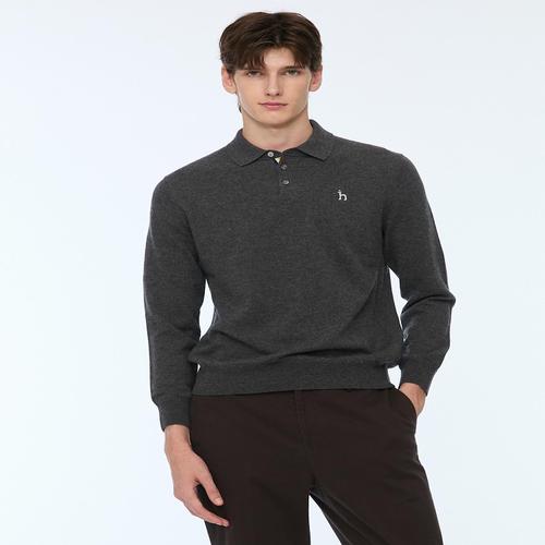 헤지스 남성 [스테디셀러] 차콜그레이 짜임 울 카라니트 (WHSW4D551CG)