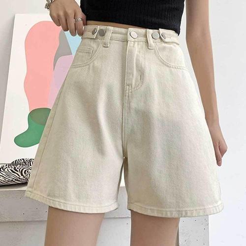 골드버튼 하프팬츠 하이웨이스트 하프팬츠 롤업가능 데님반바지 WFJ5OZO