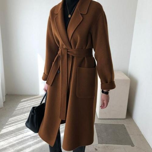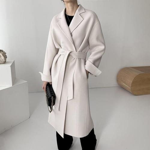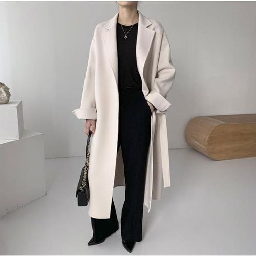 [바이어스]오버핏 벨트 세트 고급진 롱 핸드메이드 코트 룩 (14094960A)