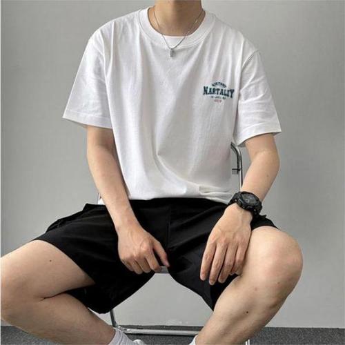 [셀러허브_여성트랜드패션]남자 흰티 베이직 남성반팔티 레터링 학생 반팔티셔츠 캐주얼 라운드넥 유니크..