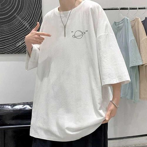 화이트 오버핏티셔츠 7부 남자면티 기본 티셔츠 WFKZYG0