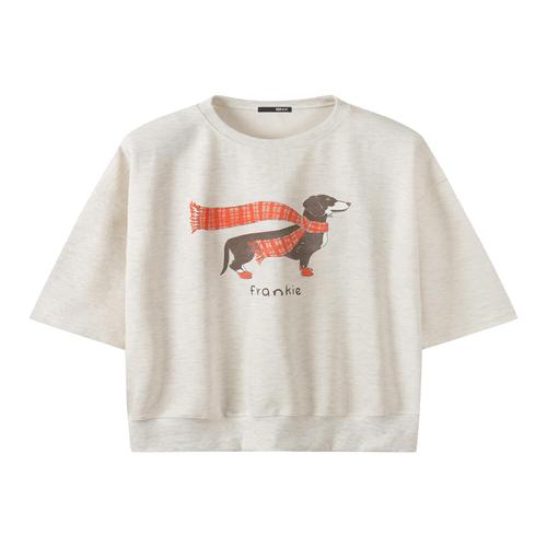 [비엔엑스]프랭키 도그 프린팅 7부 맨투맨 티셔츠 (BY1TS008L0)