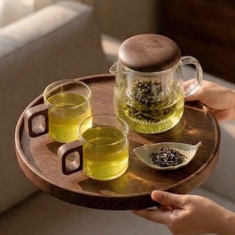 호두나무 티팟 티포트 세트 내열 유리 차주전자 잔2개 500ml