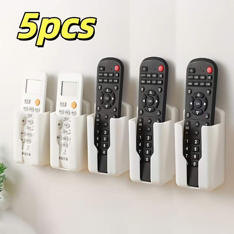 TEMU 내구성 있는 플라스틱 벽걸이형 리모컨 홀더 5개 - 벽걸이형 TV 및 에어컨 리모컨 정리함, 탁상용 서랍 수납 솔루션, 공간 절약형 수납 상자, 에어컨, TV, 선풍기 리모컨용, 가정용 정리, 책상 액세서리