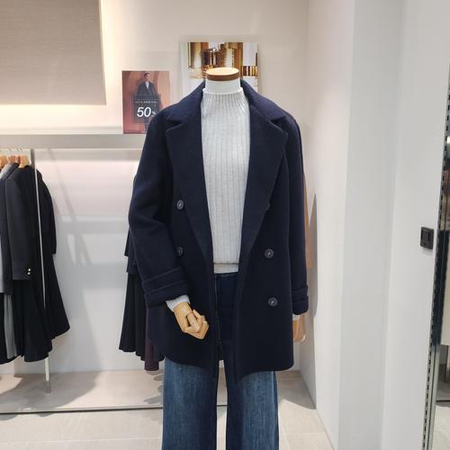 바네사브루노 24FW 시즌오프 다크네이비 울혼방 더블버튼 크롭 점퍼 VIJU4F104N3