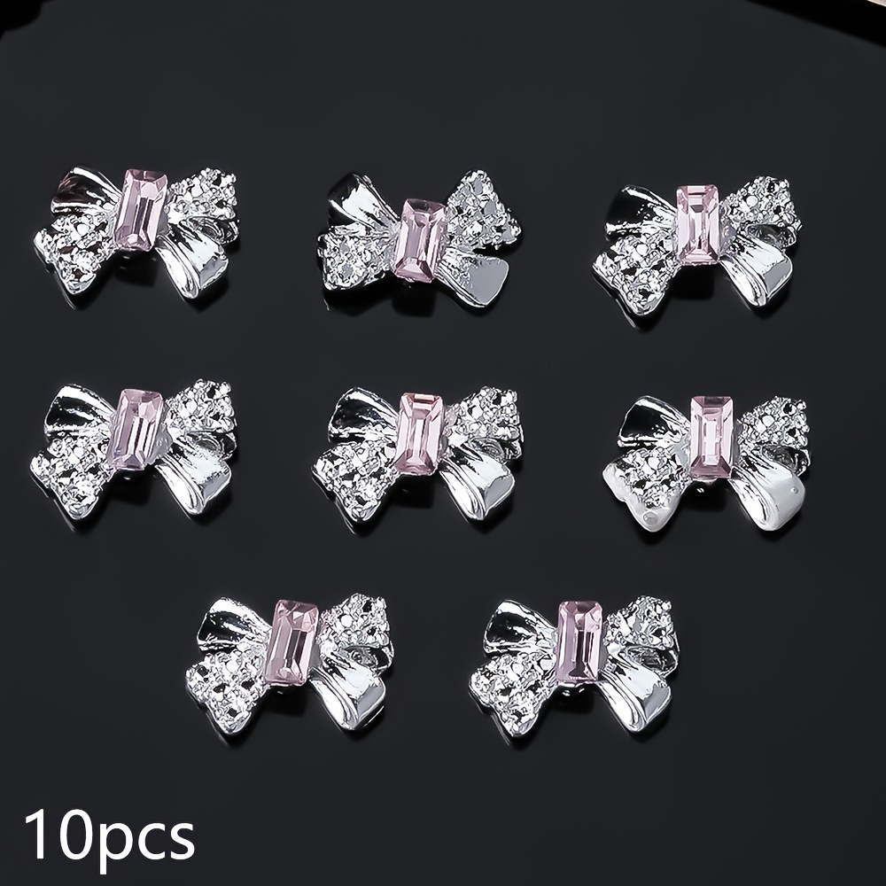 TEMU 10개 럭셔리 리본 네일 아트 장식 - 반짝이는 합성 보석, 손발용 & 휴일 네일 디자인 - 멀티컬러 네일 아트 소품, 광택 마감, 라인스톤 장식