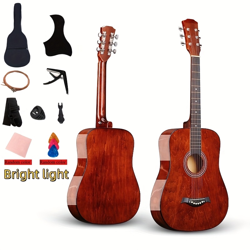 TEMU 전문가에게 필수적인 제품: 38인치 아쿠스틱 기타 (광택 엔드), 원통형 나무 바디, 카포, 기타 백팩, 피크, 조절 가능한 기타 스트랩, 피크가드, 스트링, 피크 박스, 클리닝 천을 포함한 9가지 추가 제품 포함