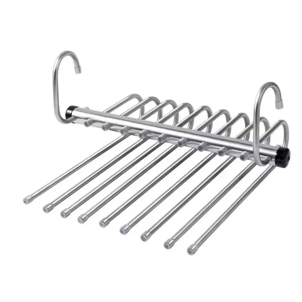 TEMU 공간 절약형 9단 금속 바지 걸이, 미끄럼 방지 코팅, 5개의 후크 포함, 스테인레스 스틸 디자인, 잡음 80% 감소 가능, 슬림한 청바지 및 데님 소재에 적합, 11개의 축제에 이상적인 선물|바지걸이