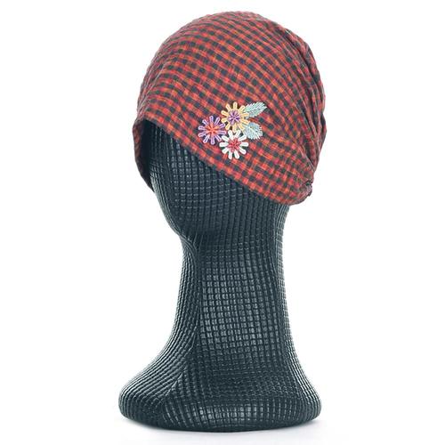 국산 여성 체크 꽃자수 뒷밴딩 비니 두건 보넷 모자 KM-WH-0813-레드