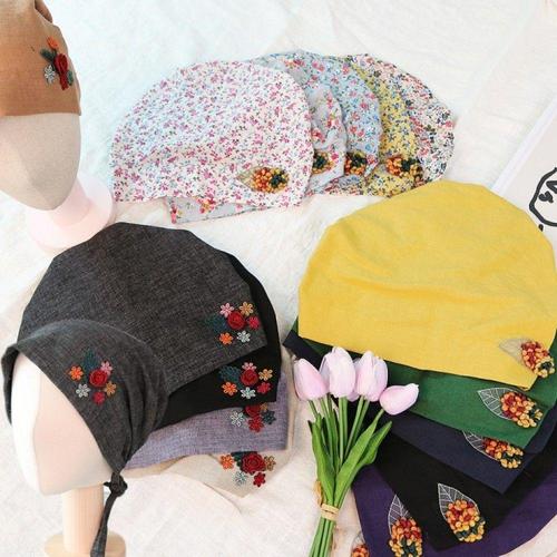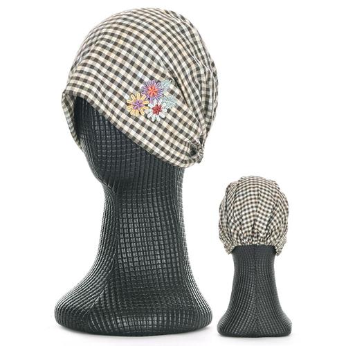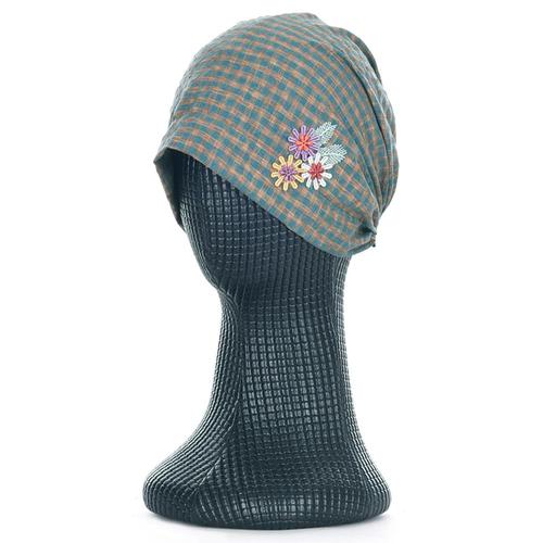 국산 여성 체크 꽃자수 뒷밴딩 비니 두건 보넷 모자 KM-WH-0813-그린