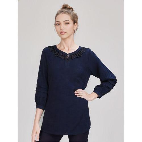 [크로커다일레이디]네이비 레이스넥 단색 블라우스 CLCMBL130
