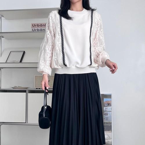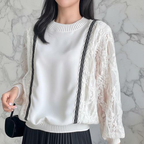 루스리더 여성 레이스넥 벌룬소매 긴팔 블라우스 E39
