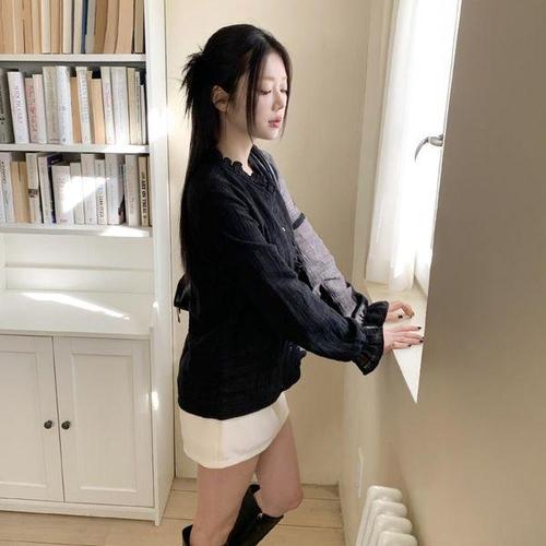 [신상오픈런]여성용 데일리 내추럴 프릴넥 여리핏 가디건 블라우스