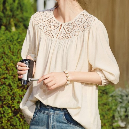 슬림핏부터 오버핏까지! 넥레이스블라우스로 나만의 스타일을 완성하세요.