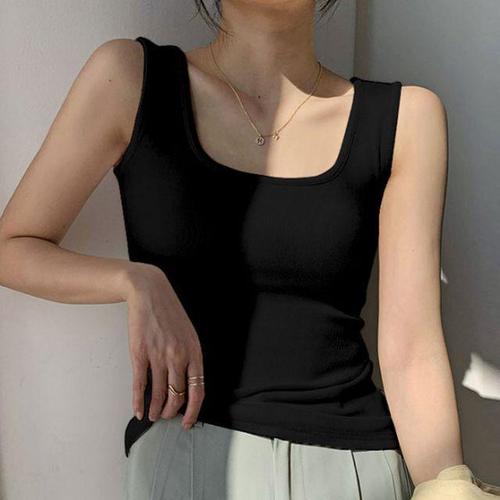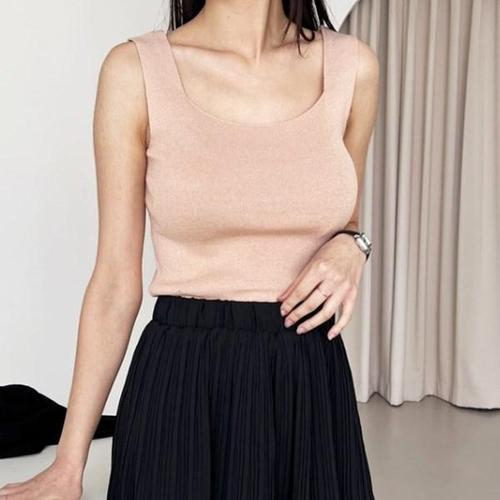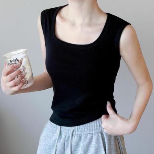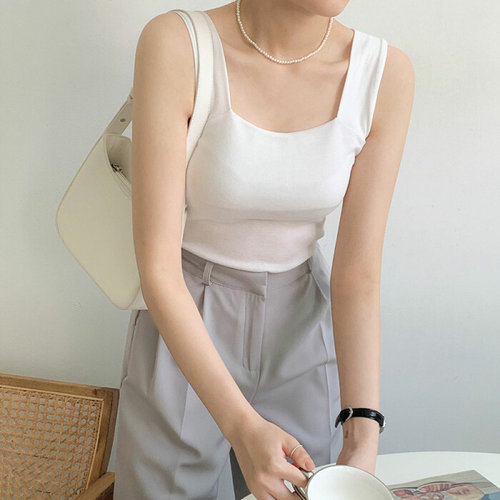 [신상오픈런]여성 단색 스판 스퀘어넥 민소매 니트 탑
