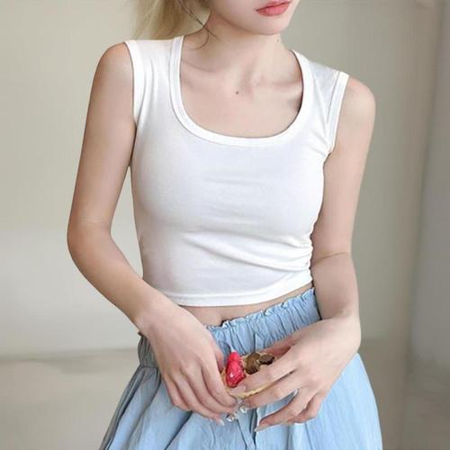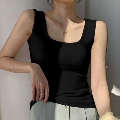 |CCT9698|여성용 스판 민소매 스퀘어넥 티셔츠 데일리 스타일