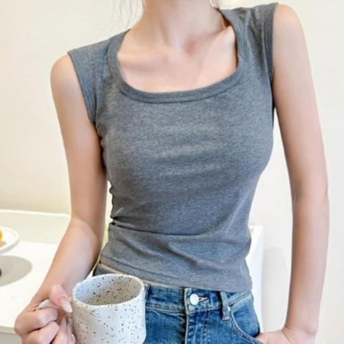 |CCT9698|여성용 스판 민소매 스퀘어넥 티셔츠 데일리 스타일