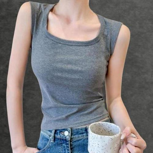 [신상오픈런]여성용 스판 민소매 스퀘어넥 티셔츠 데일리 스타일