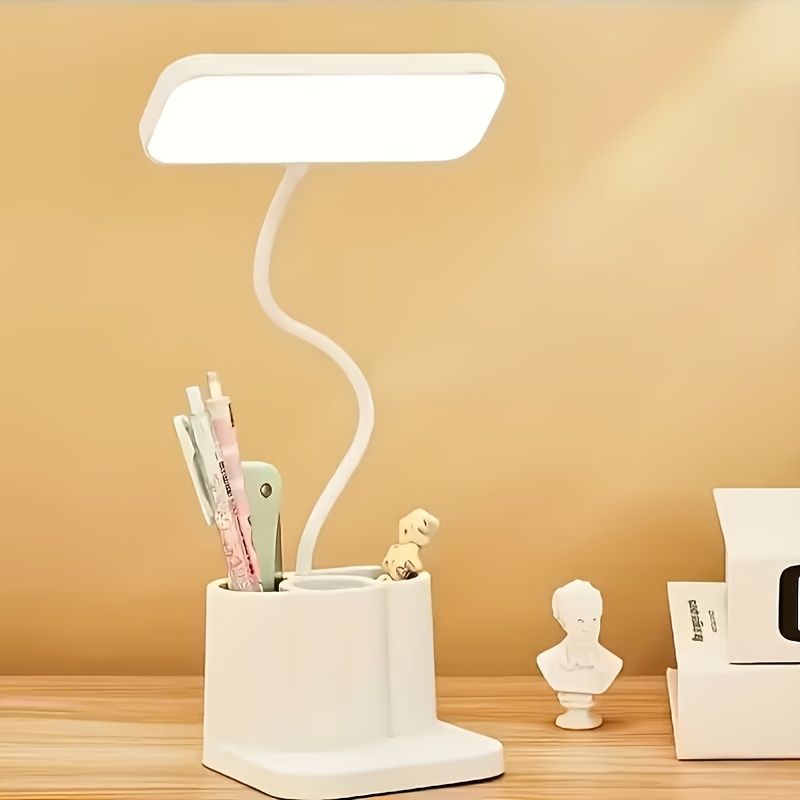 TEMU 휴대용 LED 독서등 | 스완 넥 데스크 램프 (펜 홀더 및 휴대폰 거치대 포함), USB 충전식, 조절 가능한 터치 컨트롤, 눈 보호 화이트 라이트, 기숙사, 사무실, 서재, 침실에 적합 - 신학기 및 새해 선물로 이상적